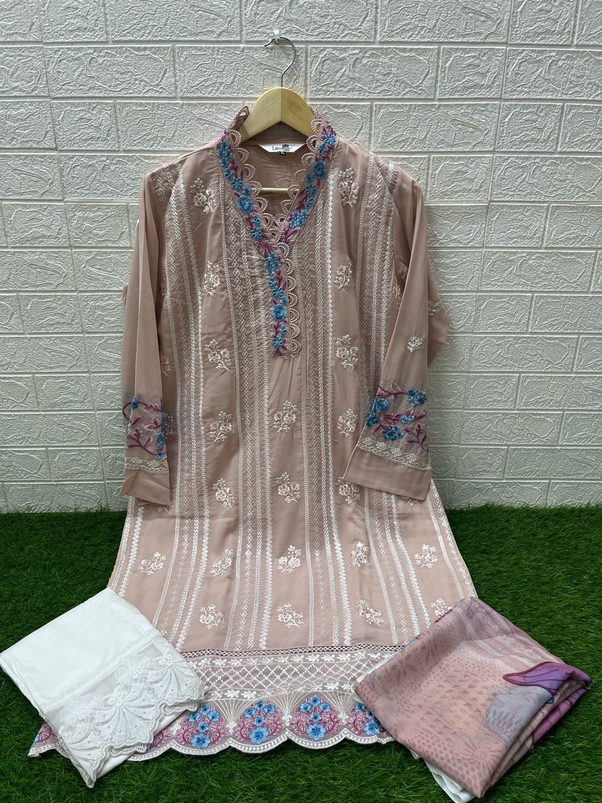 Designer stylish Tunic Heavy Embroidery Kurti With Lace & Heavy Pearl Work with Glamours Gorgeous Heavy Embroidery slevees With Pearls paired with designer Stretchable Pant & Digital Print Dupatta.