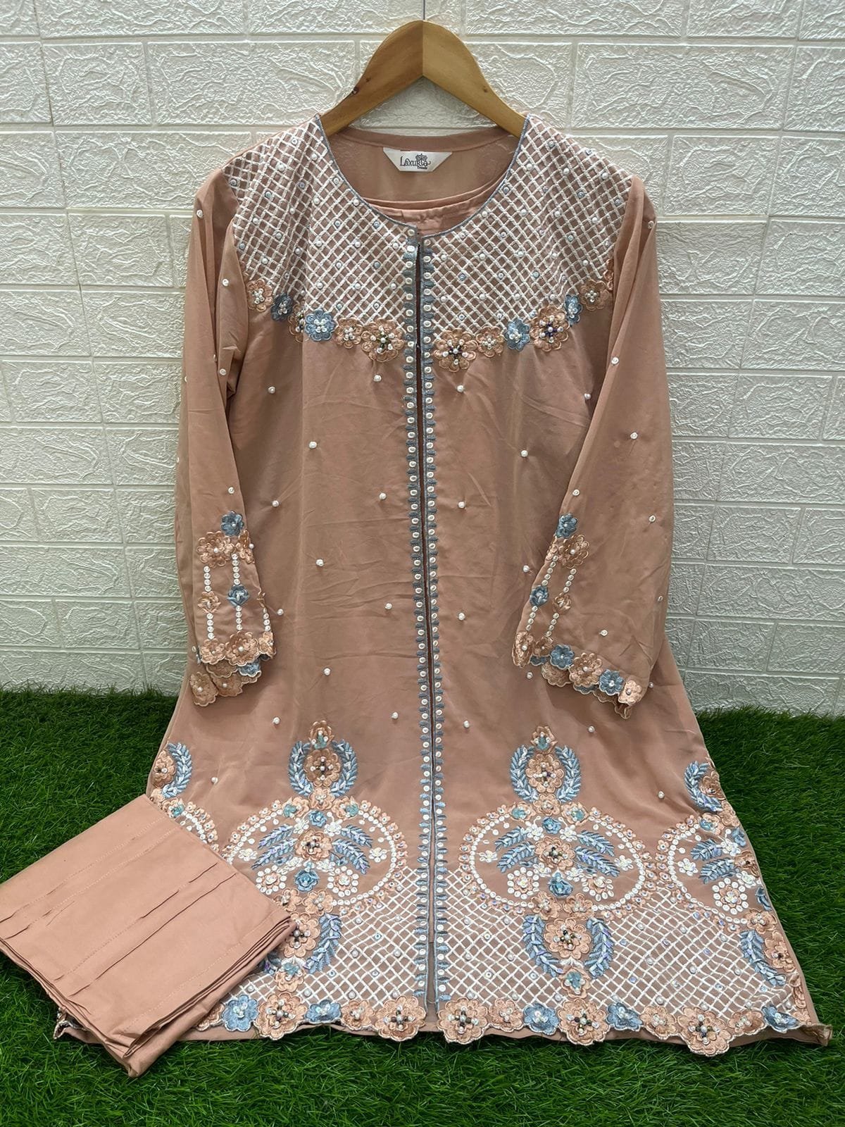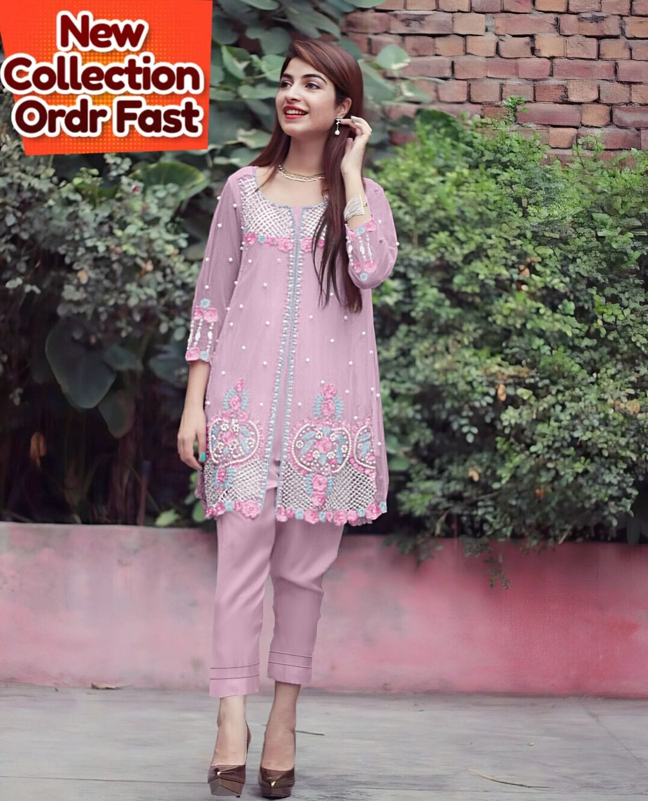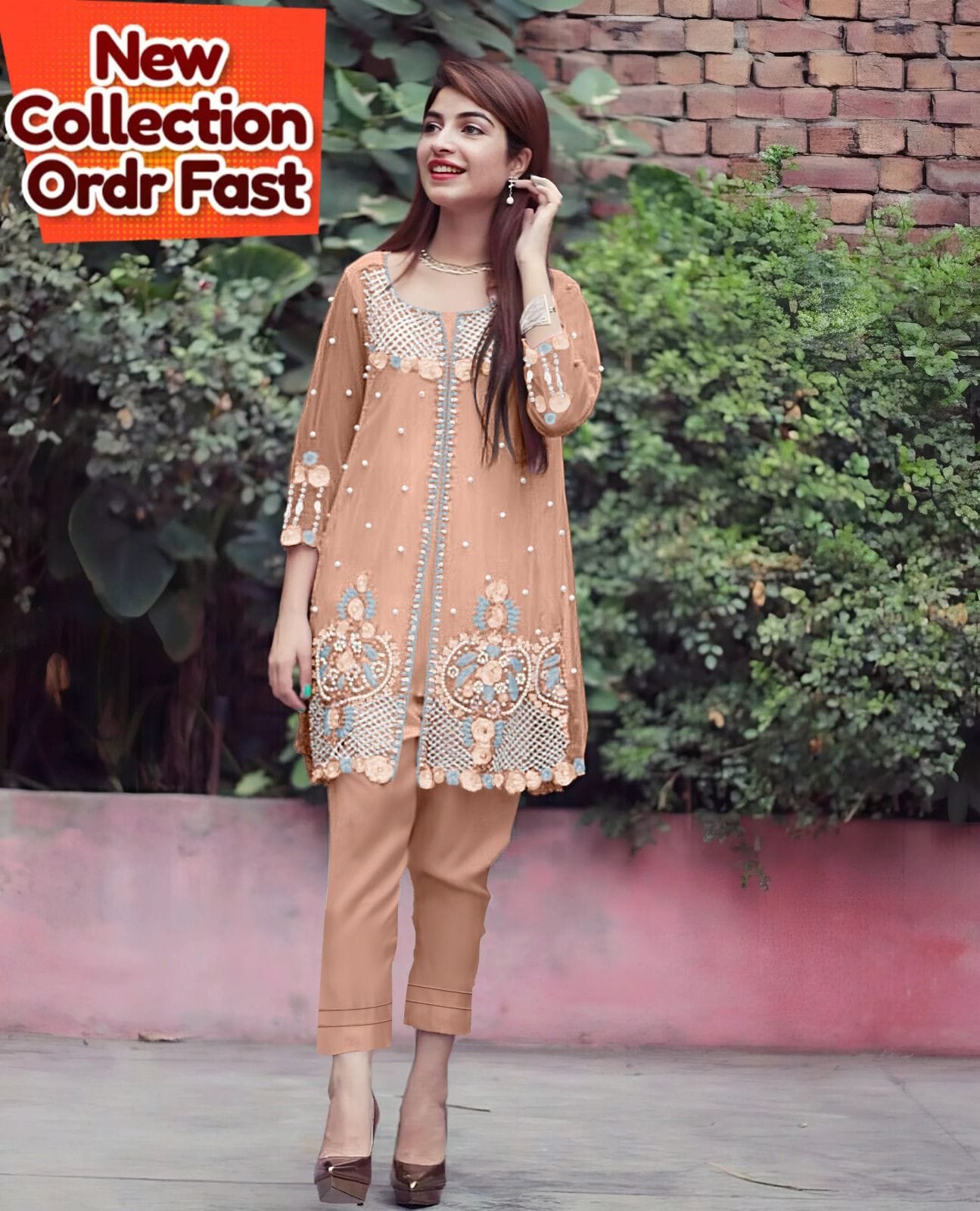 Designer stylish Tunic ( Shrug) …Classic Heavy Embroidery with Heavy Hand Work , Style Kurti Pair With separate Inner with Glamours Embroidery slevees & Pant.