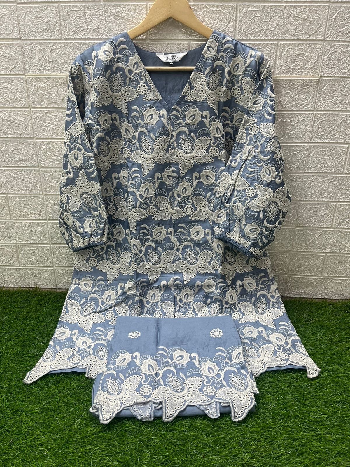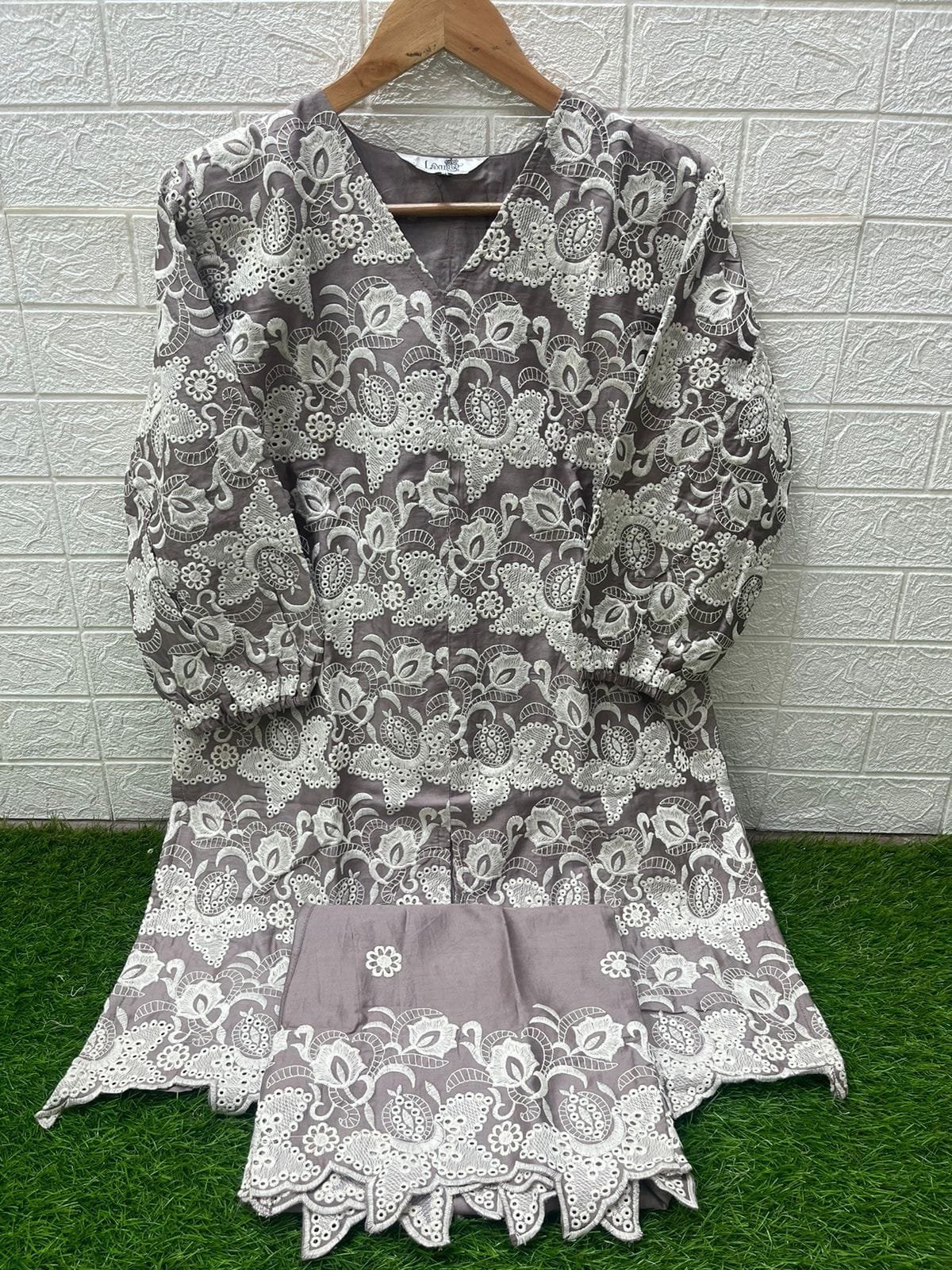 Designer Tunic with Gorgeous Heavy Board Embroidery Tunic £ sleeves Also In Board Embroidrey * n *Glamours * paired With Embroidrey Plazo With Cut Work.