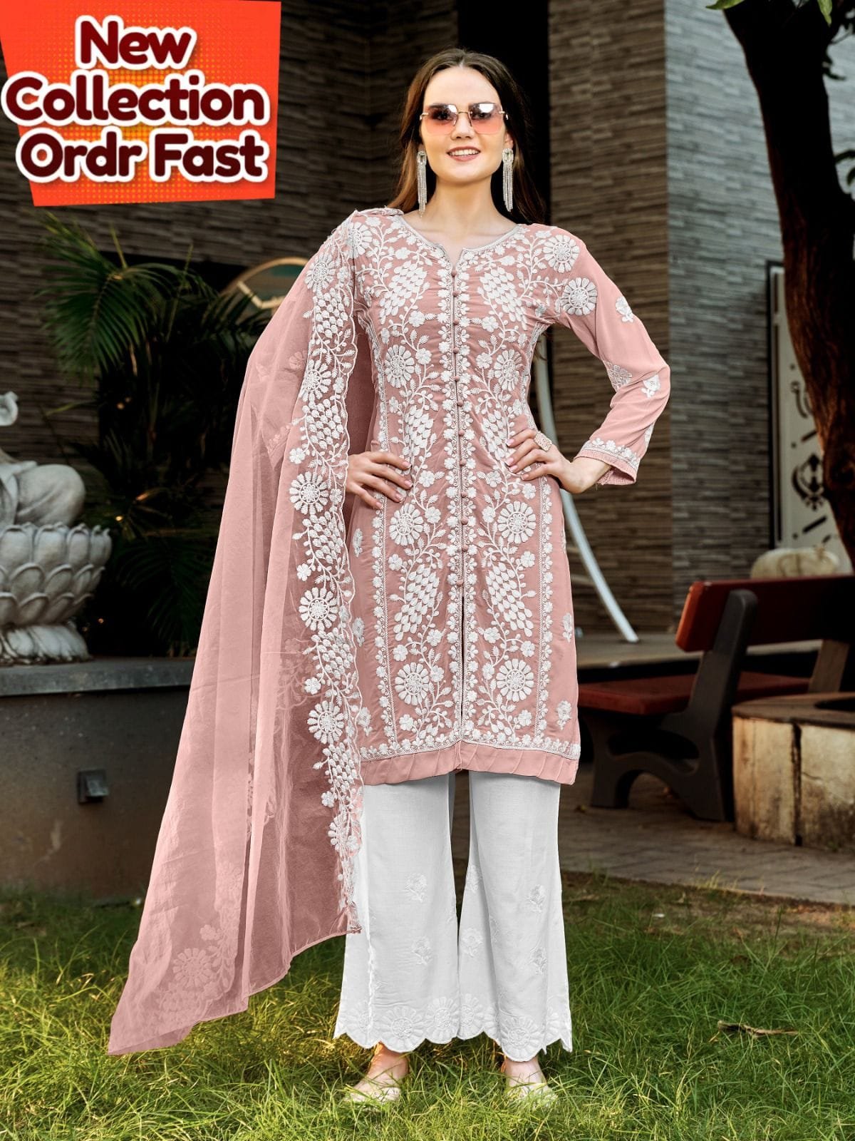 *Designer stylish Embroidery Tunic & Embrdry In Sleeve & Stylish Neck Pattern with Glamours. Gorgeous Looking In Kurti. Designer Paired with Embrdered Organza Dupatta & Embrdry In Plazo*