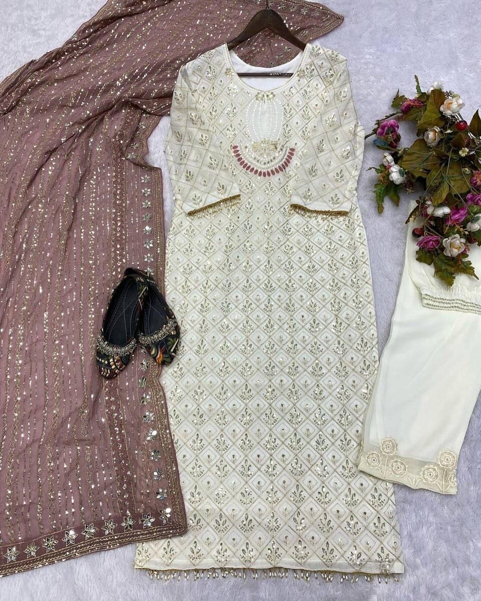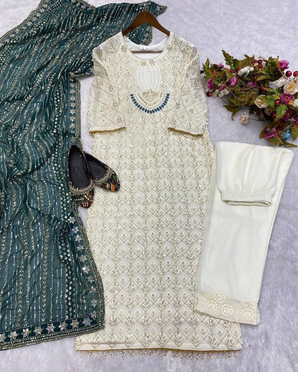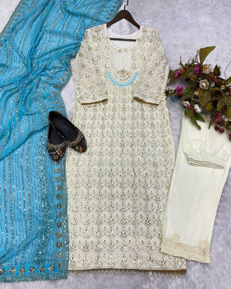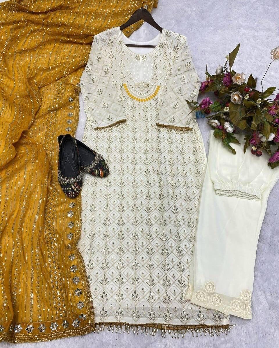 ✨ DUPATTA :-Fox Georgette With Sequence Embroidered And 100% Real Mirror.