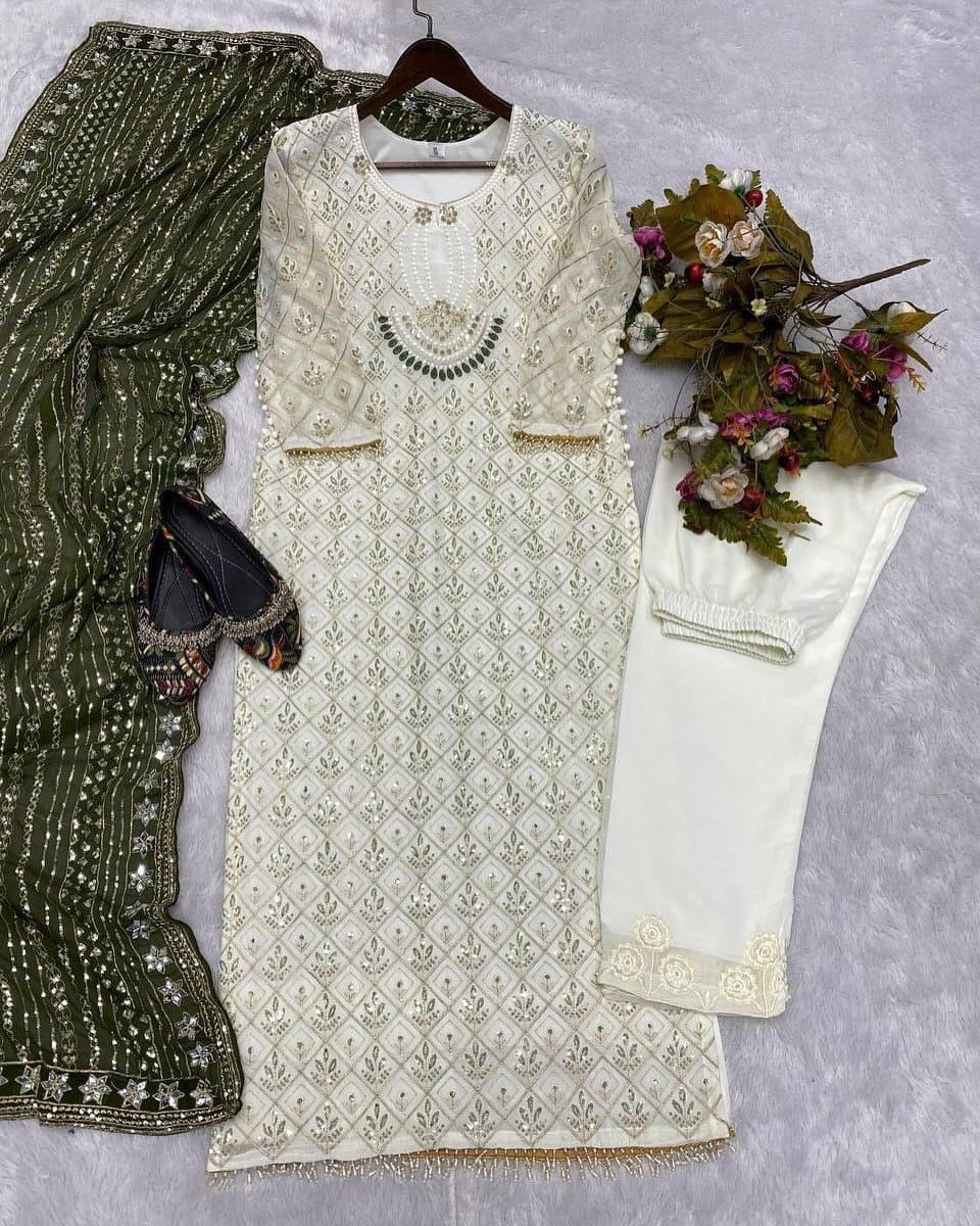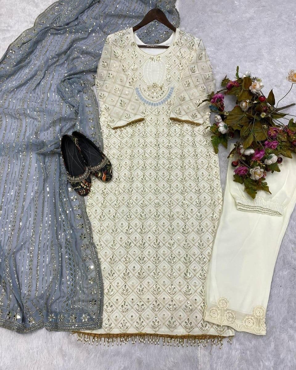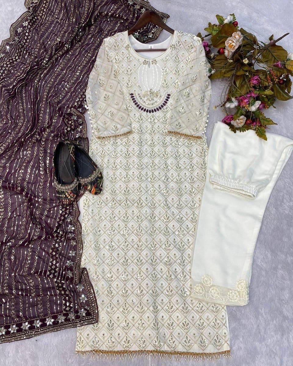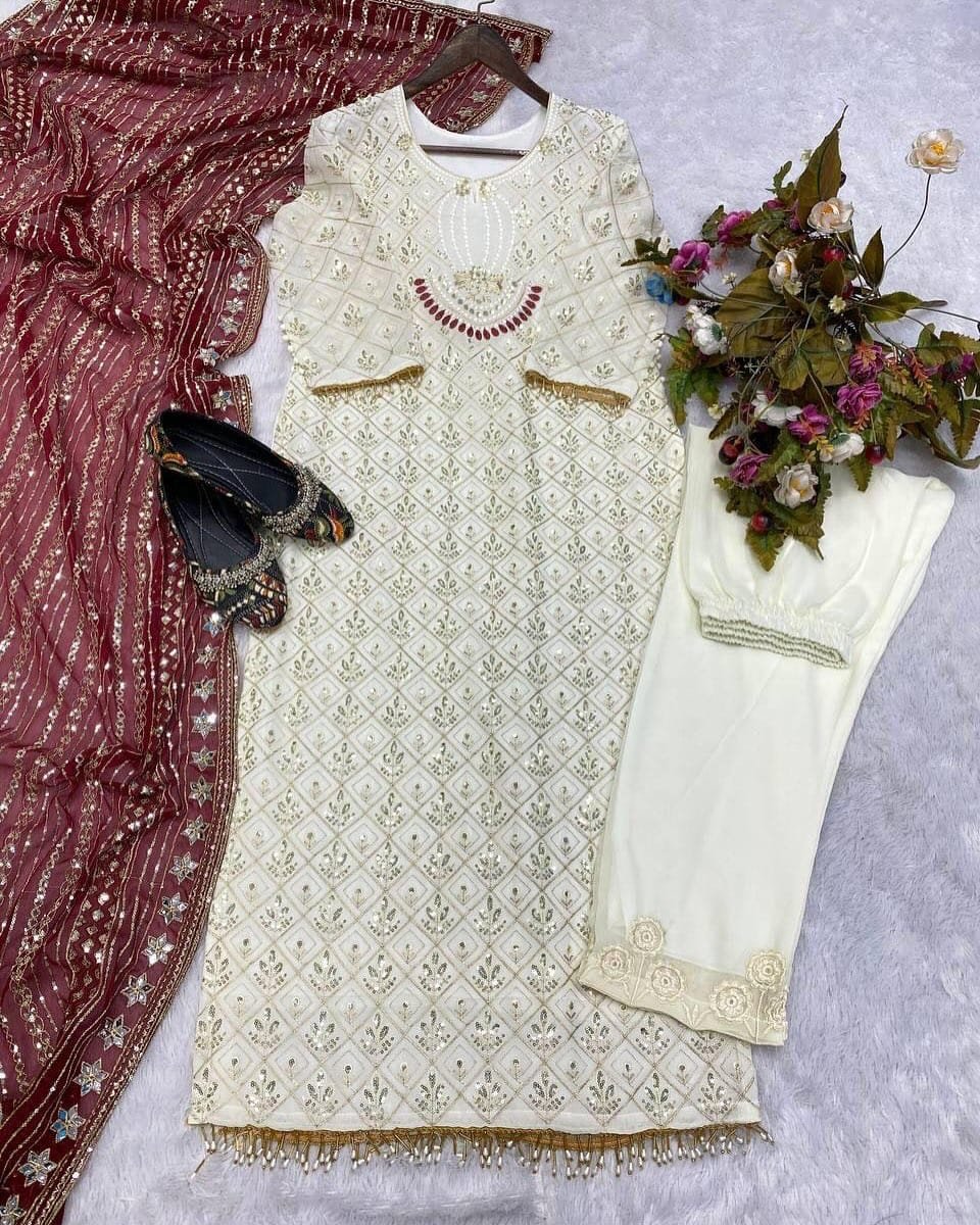 ✨ DUPATTA :-Fox Georgette With Sequence Embroidered And 100% Real Mirror.
