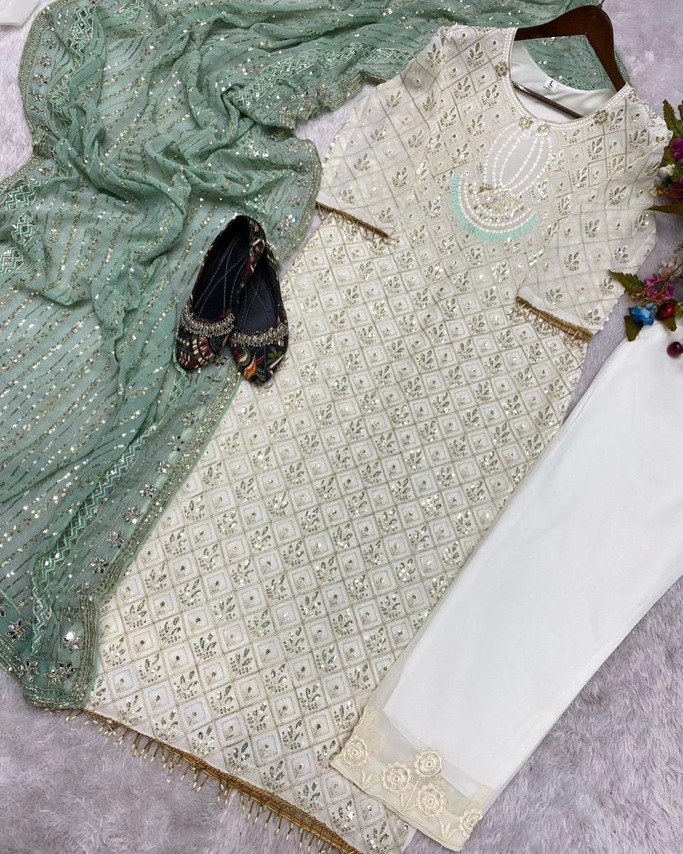 ✨ DUPATTA :-Fox Georgette With Sequence Embroidered & Real Mirror.