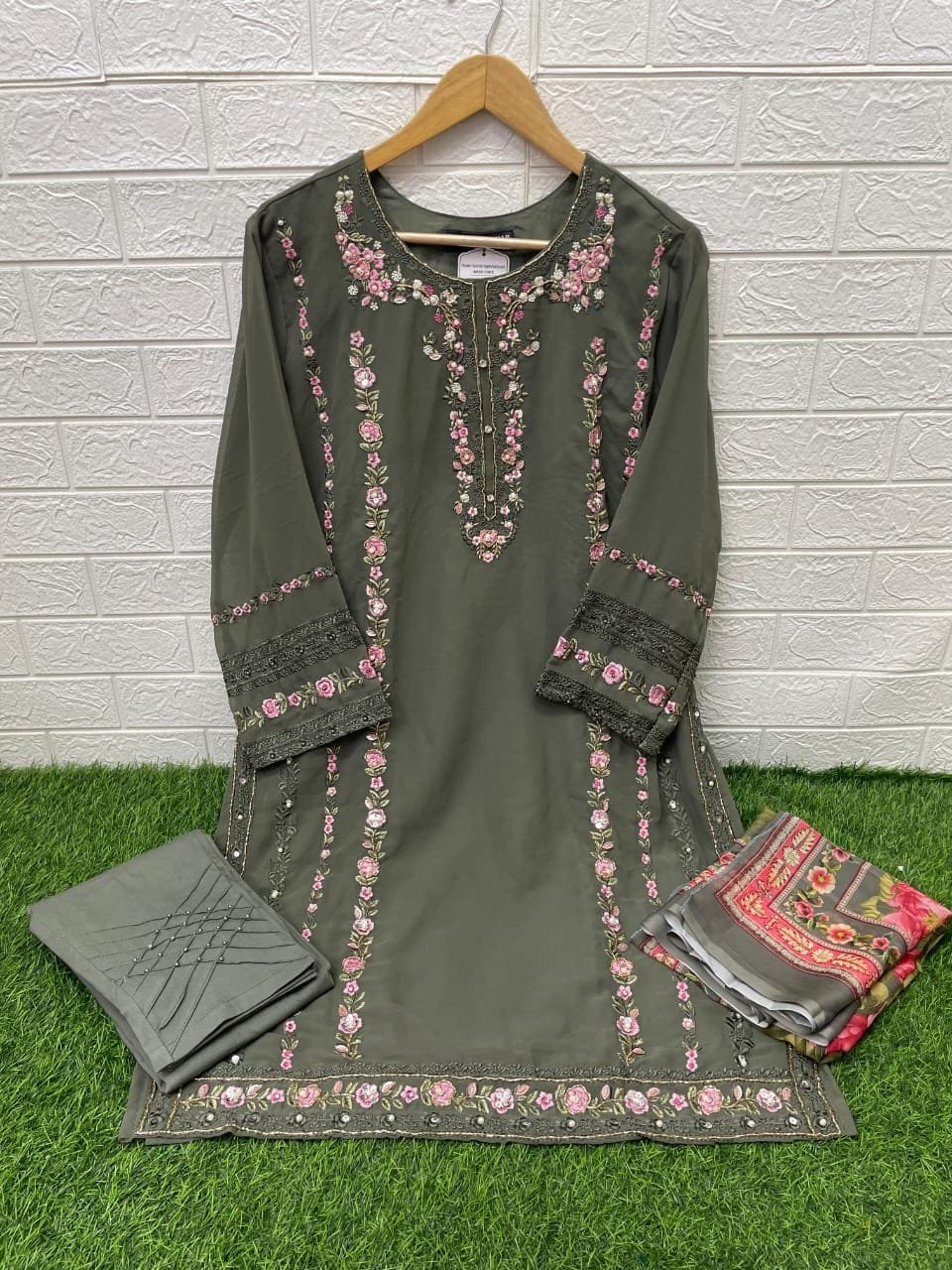 Look Classy Stylish Embroidery With Glamorous hand work & in Top & Slevee With Degital Dupatta & Stylish Ciggerate Pent With Gorgeous Embroidery Work & Pearl Work in our new Designer collection
