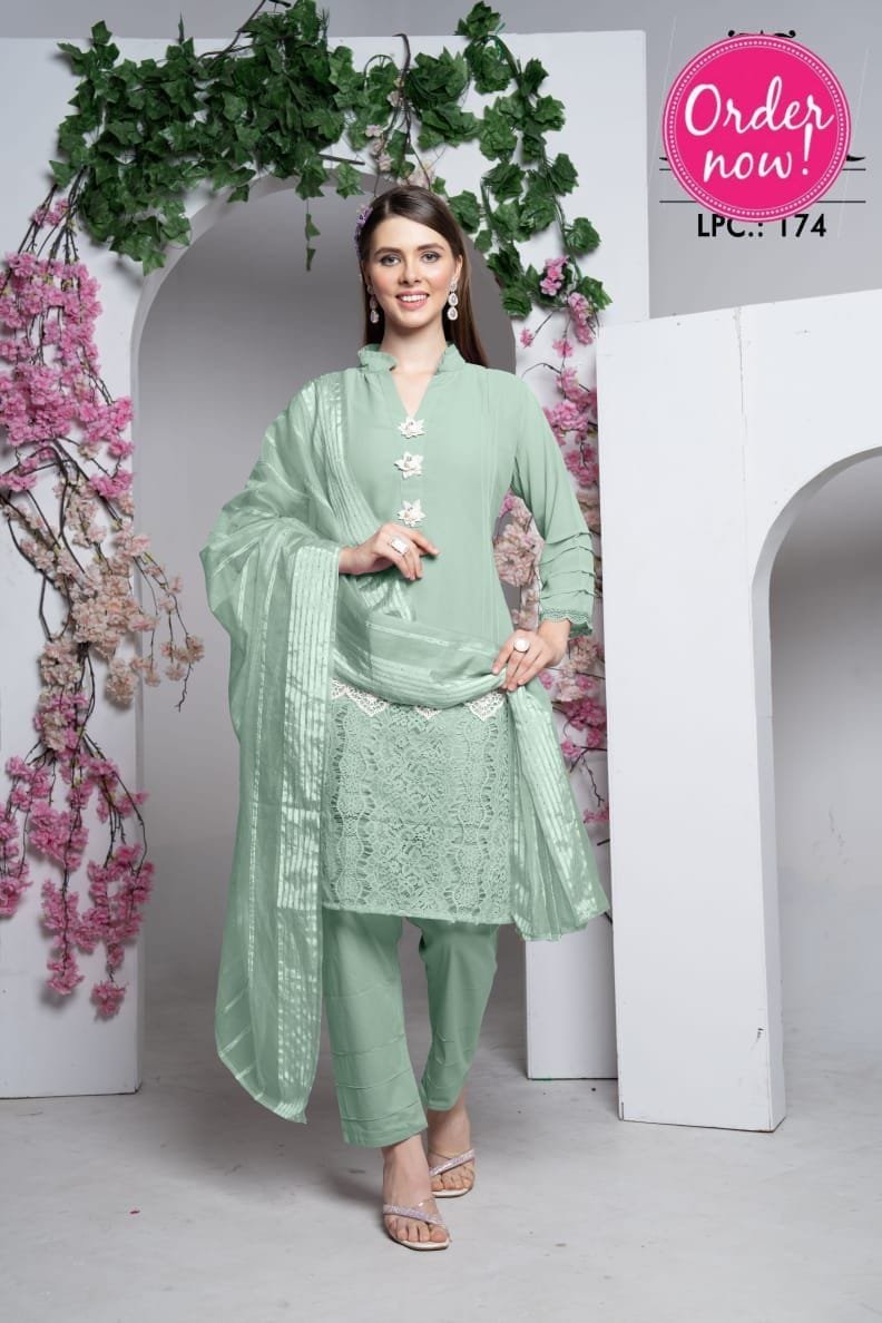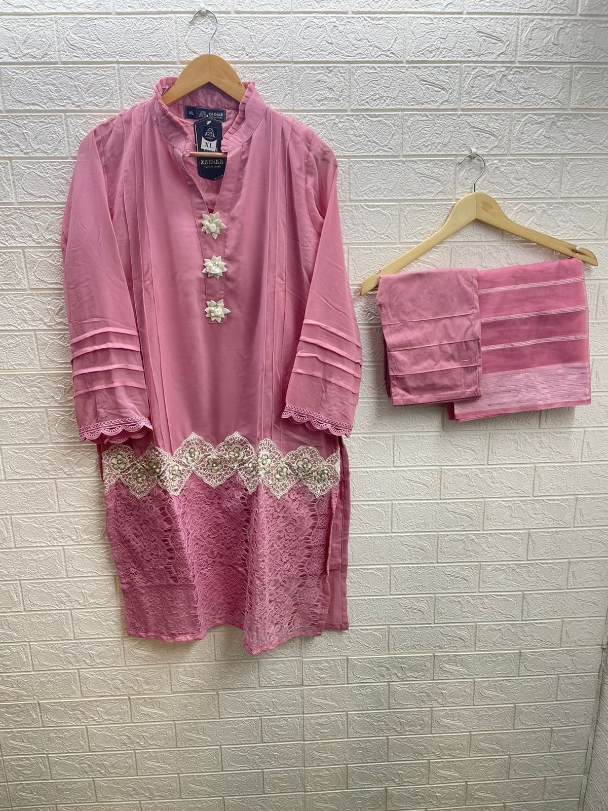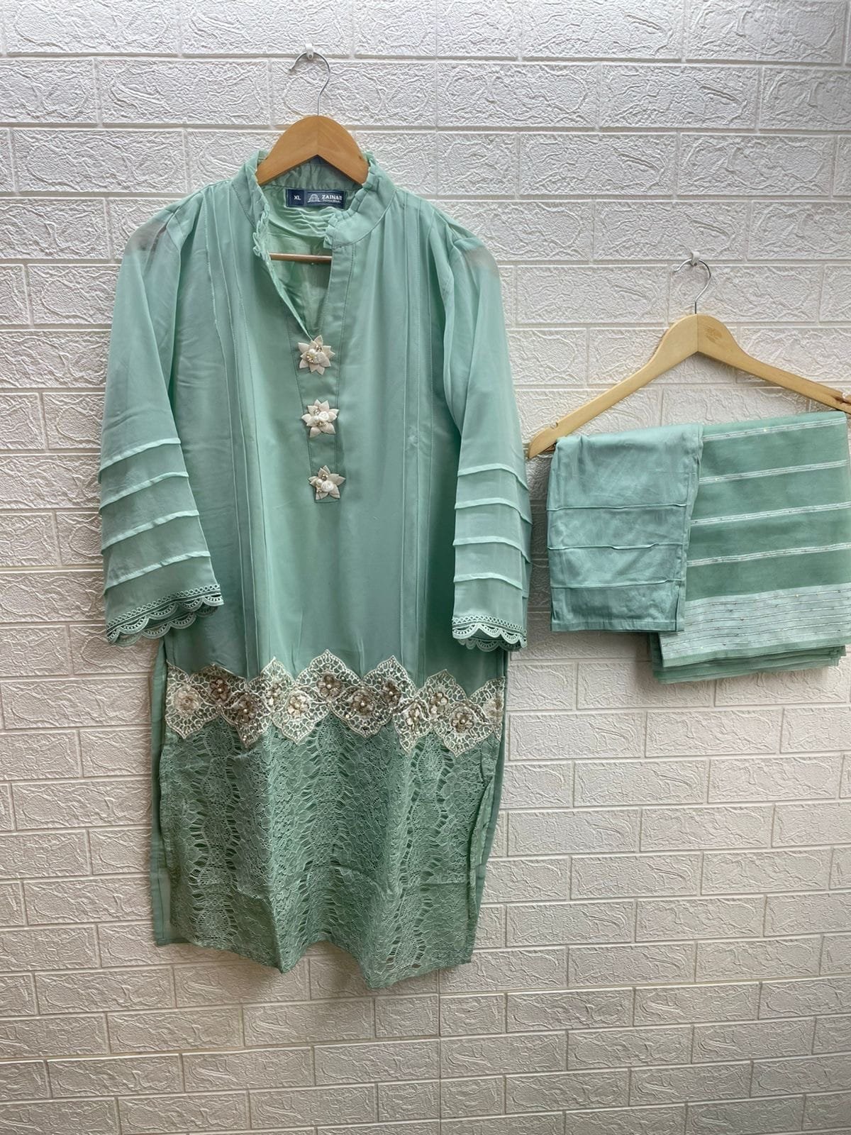 Designer Luxery preet Tunic ‼️With beautiful classy paired with designer Glamorous Chemical Lace & Embroidery With Hand Work belt in kurti & Stylish Sleves With Lace Work With Designer Orgranza Dupatta paired with Designer Cigarette Stretchable Pent